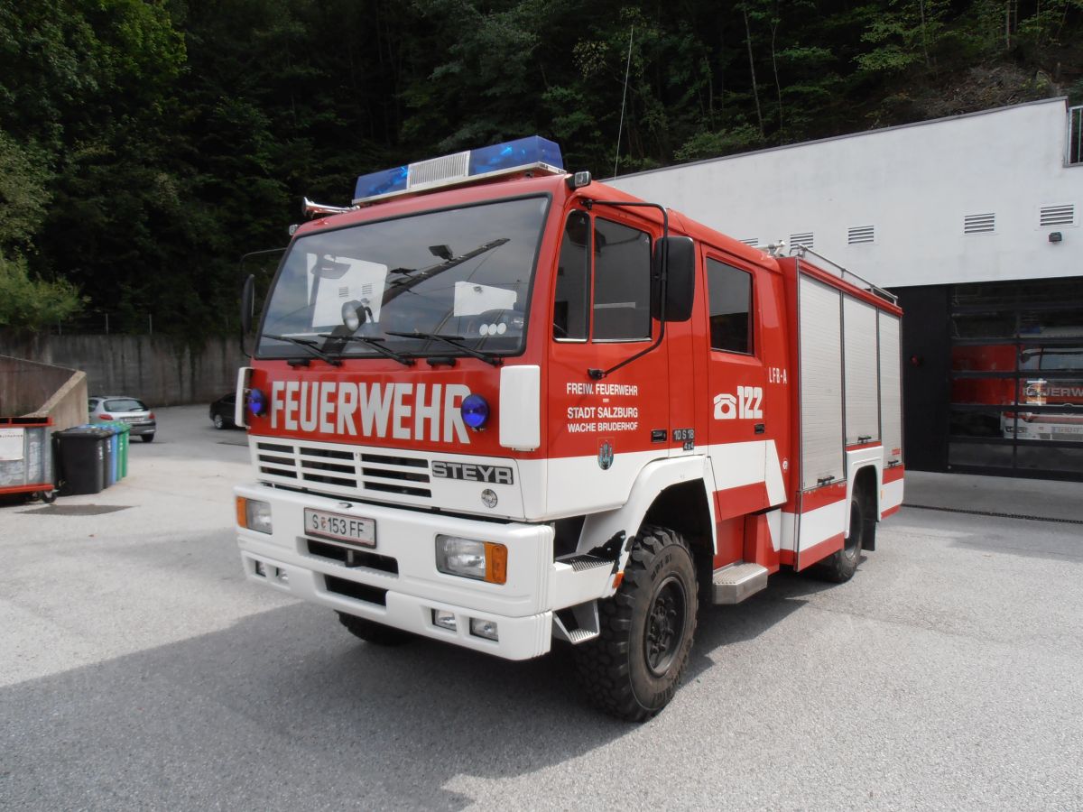 Seit 1989 steht dieses Fahrzeug im Dienst der Freiwilligen Feuerwehr der Stadt Salzburg Wache Bruderhof.