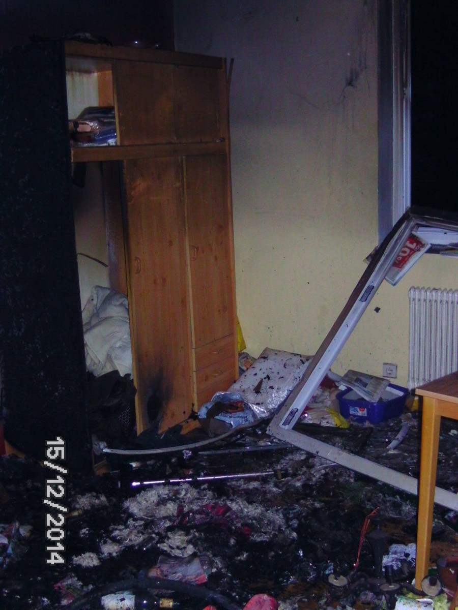 Einsatz für FF Bruderhof: Gorianstraße 26 Mittelbrand mit FF beide DL Zimmerbrand 14.12.2014 23 Uhr 53