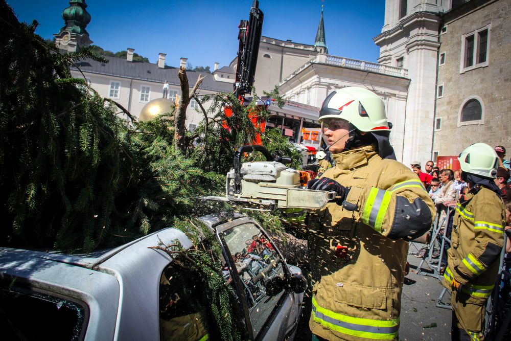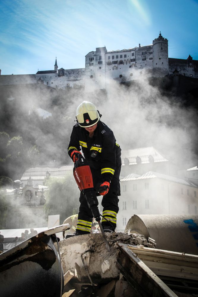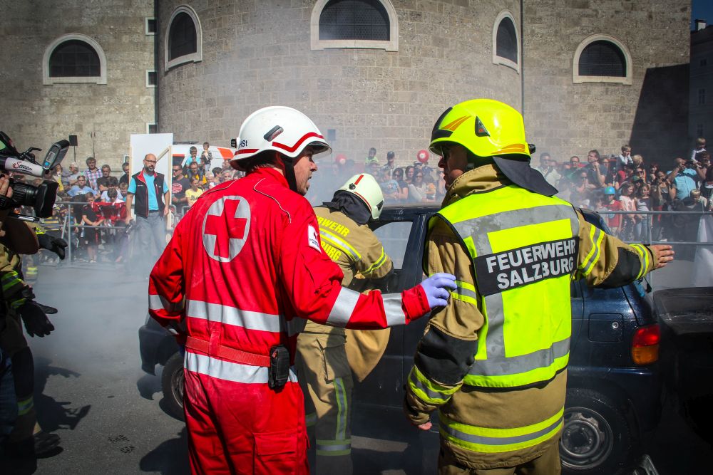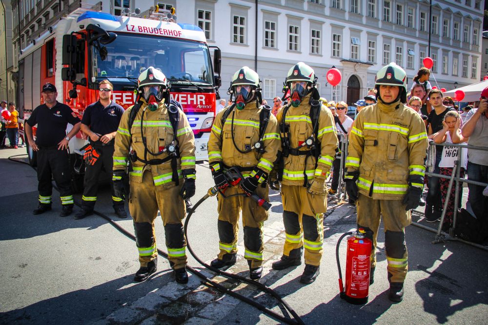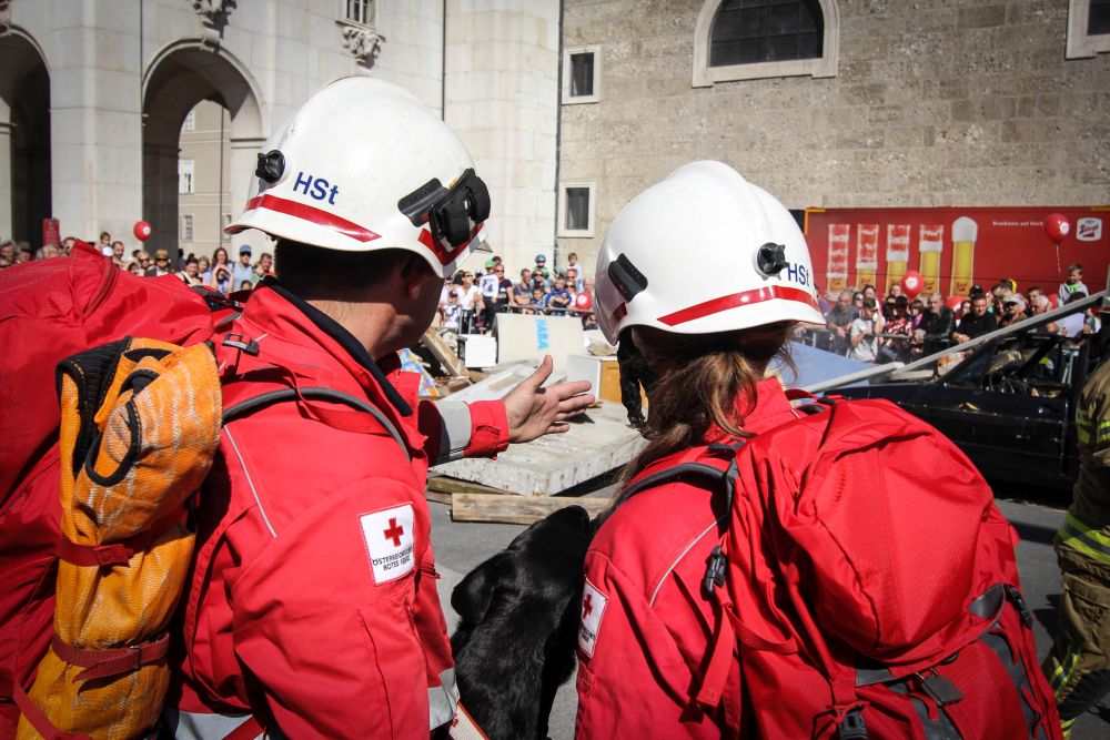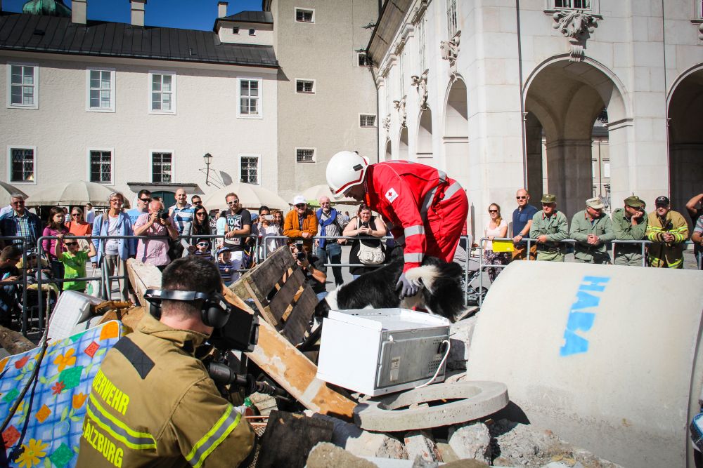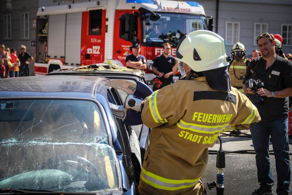 Am Kapitelplatz wurde eine Leistungsschau mit verschiedensten Übungsszenarien präsentiert. Vom Zimmerbrand im zweiten Stock, über einen Verkehrsunfall, einem Sturmeinsatz und nicht zuletzt die Vorstellung der HUSAR Gruppe mit der Suche nach verschütteten Personen in einem Trümmerfeld, wurden gezeigt.