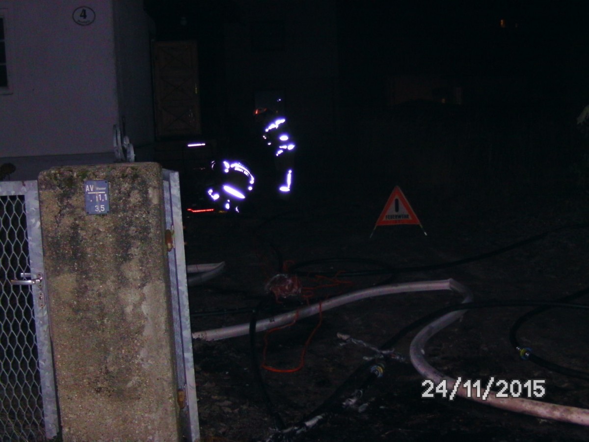 Nach einer Erkundung musste Tank II Bruderhof mit flexiblen Hochdruckschläuchen einen Innenangriff vorbereiten, da der HD auf der Haspel vorübergehend außer Dienst war.Weiters waren die Atemschutzgeräte des Fahrzeugs gerade bei der Überprüfung, wodurch für die Zeit bis zum Eintreffen von Pumpe I ein Angriff mittels Schaumrohr durch ein offenes Kellerfenster vorgenommen wurde.