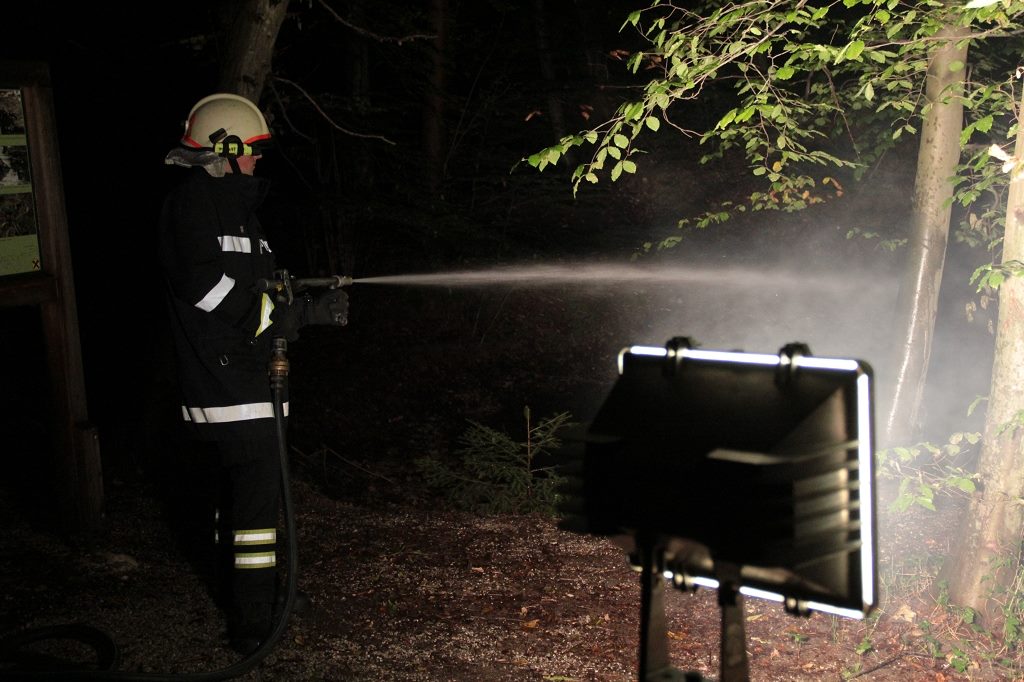 Mit der Tragkraftspitze wurde die Relaisstelle Berg eingerichtet und mit den Schläuchen aus den Containern, die Zubringerleitung zu Tank 2 Bruderhof fertiggestellt. Mit 3 C-Rohren konnte der Übungsbrand rasch unter Kontrolle gebracht werden.